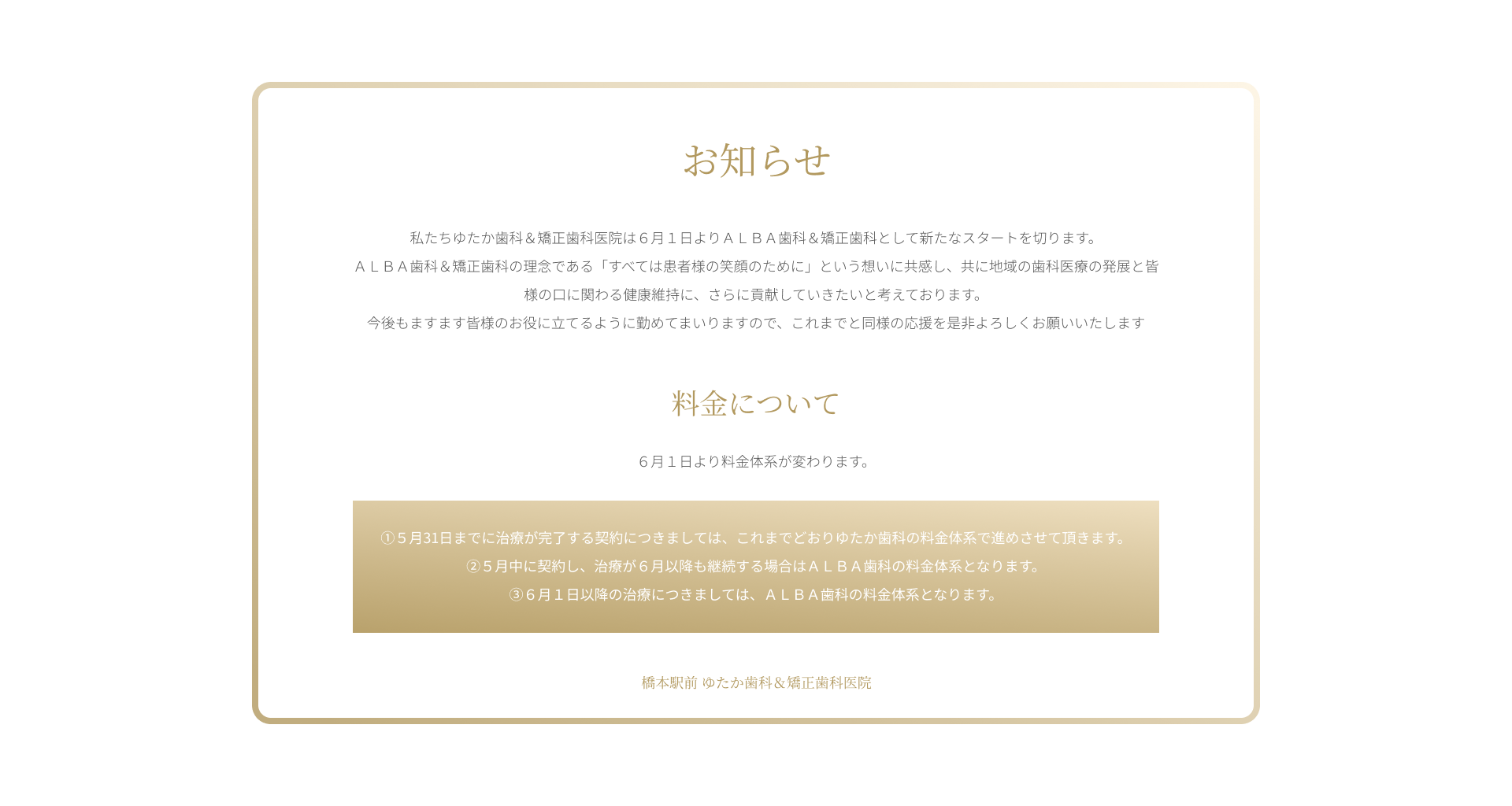 橋本駅前ゆたか歯科&矯正歯科医院での保険診療の初診費用は、平均3,000円〜5,000円です。